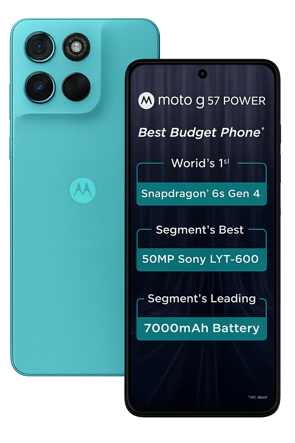 Moto G57 Power 5G इस साल लॉन्च हुआ मोटोरोला का एक पावरफुल बजट स्मार्टफोन है। इसमें 6.7-इंच का बड़ा फुल HD+ डिस्प्ले दिया गया है जो बेहतर व्यूइंग अनुभव देता है। यह स्मार्टफोन Snapdragon 6s Gen 4 प्रोसेसर से लैस है, जो तेज़ और स्मूद परफॉर्मेंस सुनिश्चित करता है। फोन में 50MP Sony LYT-600 प्राइमरी कैमरा मिलता है। इसकी सबसे बड़ी खासियत 7000mAh की दमदार बैटरी है। Moto G57 Power 5G की शुरुआती कीमत करीब ₹14,000 है।